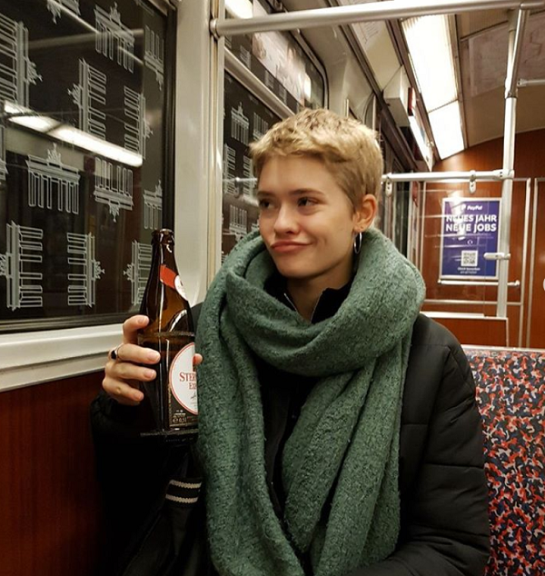 坐在柏林地铁上的她俏皮可爱,撅个嘴也好看: