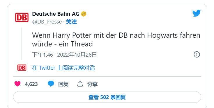 导语:哈?哈利波特坐着德铁去上学??最近坑爹的德铁在twitter上又被大家骂惨了,就像J.K罗琳po文的评论区被疯狂攻击一样。一起来看看是怎么回事吧!