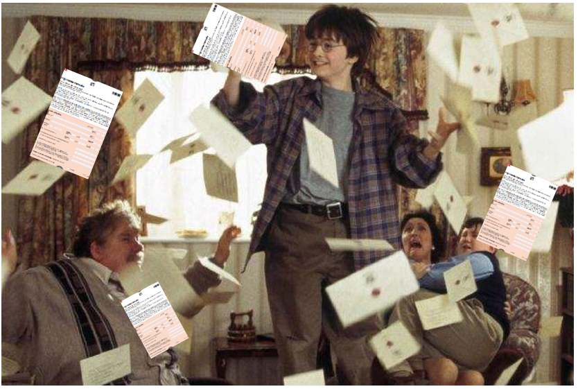 8. „In der Szene, in der das Haus mit Einladungen von Hogwarts überflutet wird, wären die Briefe Fahrgastrechte-Formulare.“ (@Peakerik)
