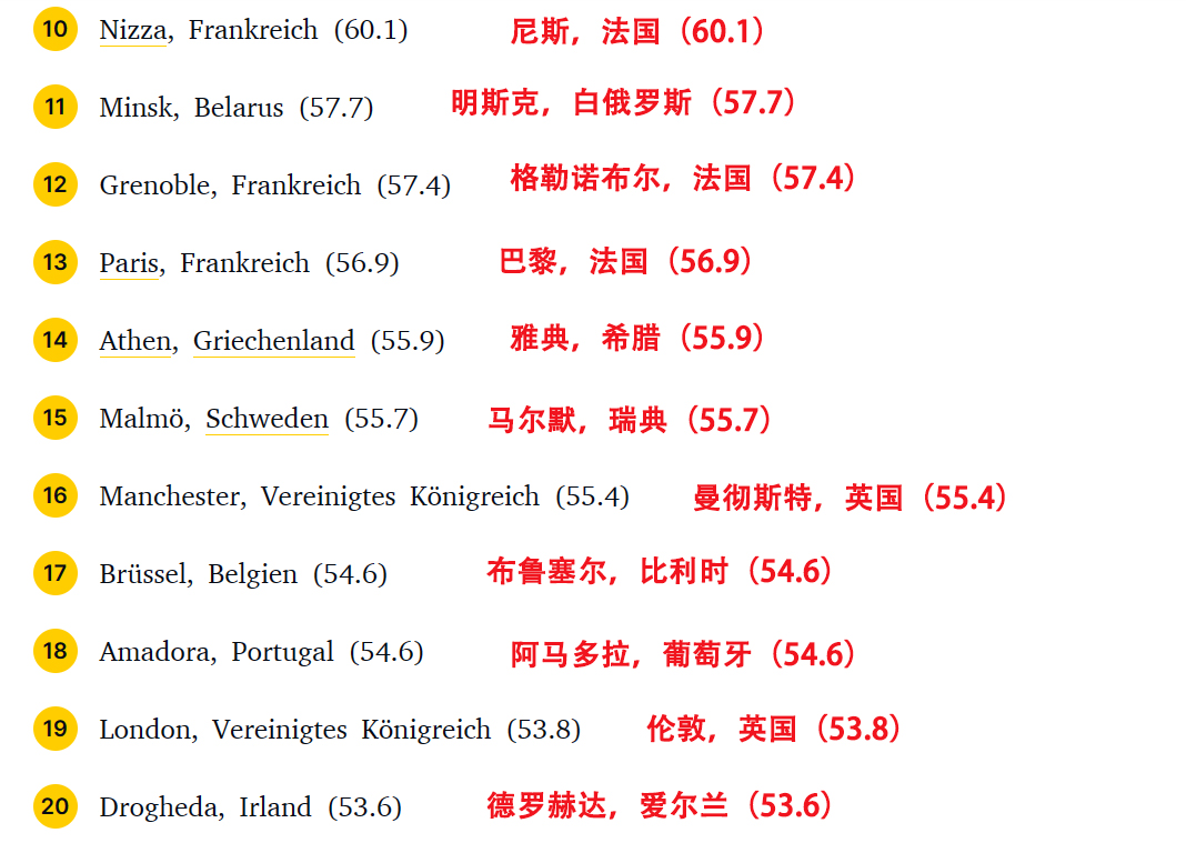 2022全球最宜居城市Top10!这座唯一上榜的德国城市分歧很大