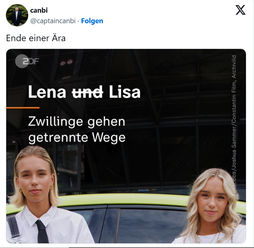 然而,其实在最近几周,两人解散的迹象已经很明显了。Lena在一次足球比赛中的个人表演就是一个很强烈的信号。 2023 年 6 月 18 日,两人创作的电影《Get up》在德国院线上映。有相关媒体报道,在电影拍摄过程中,焦点也明显集中在Lena身上。