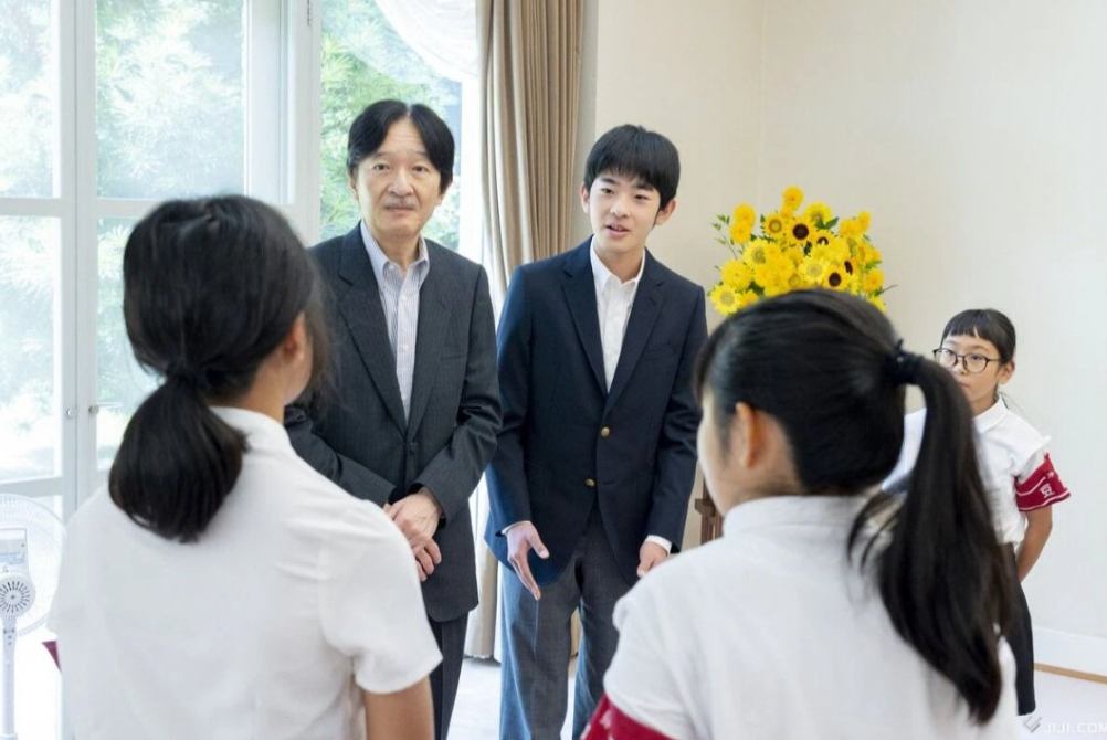 “7月30日,秋筱宫一家在赤坂御用地内与从冲绳中小学生中选出的‘小记者’们进行了交流。过程中,悠仁亲王分享了他高中到冲绳修学旅行时遇到‘星砂’的回忆。交流过后,秋筱宫一家纷纷和小记者们击掌送别”。