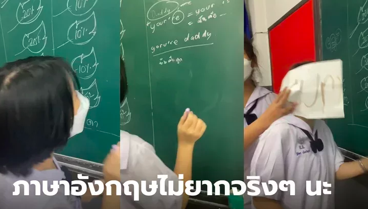 视频中小朋友们介绍了非常奇特的英语学习,人们看了都会产生自我怀疑:“诶?我以前学过的到底对不对?”小朋友教到,“Your're”里的"re"不是缩写自“are”,而是来自"is"这个词,翻译成“我是”,而"Daddy"不是读成“แดดดี๊”,而要念做“ดาดดี”,意思是“孩子”,所以"Your're Daddy"这句话应该读成“ยัวร์ อีส ดาดดี”,意思是:“我是孩子”。
