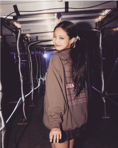 3. เจนนี่มาในเสื้อฮู้ดดี้ตัวหลวม แมตช์กับกระโปรงลายสก็อตทรงนักเรียน ลุคนี้เกาหลีเกาใจมาก