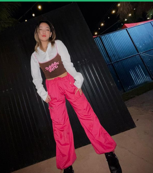 9. อยากเท่และเปรี้ยวในคราวเดียว ต้องเสื้อกล้ามครอปสีชมพู กางเกงสีขาว คาดเข็มขัดสีดำแบบนี้