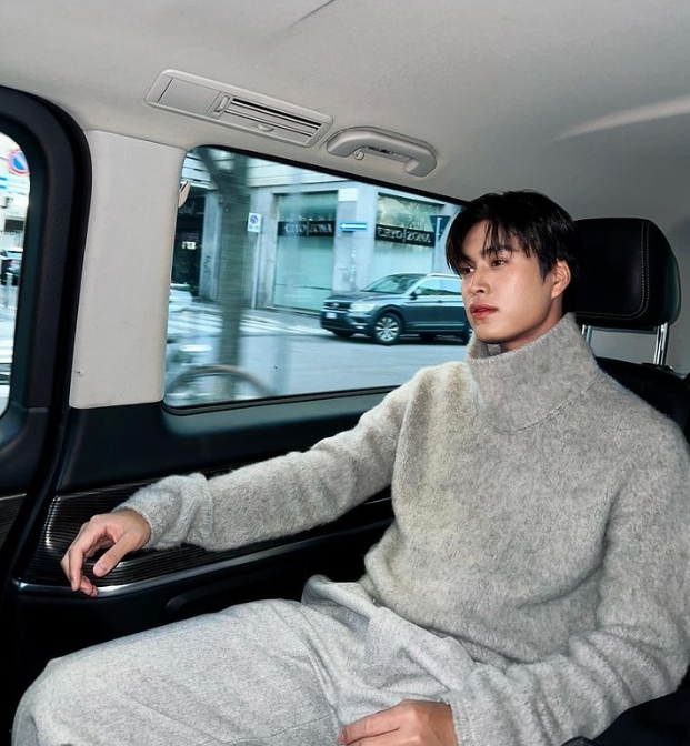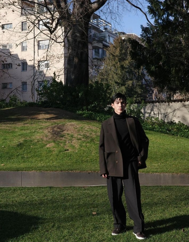 ซึ่งบอกเลยว่าลุคของหนุ่มโฟร์ทมาในแนวแบบสมาร์ทมาก เขาได้เลือกใส่เป็นเสื้อคอเต่าสีดำ แมทช์ชิ่งกับตัวเสื้อสูททรงโอเวอร์ไซซ์ที่เป็นสีเทาหม่น ๆ ซึ่งแบรนด์ Zegna มีความโดดเด่นในเรื่องของคัทติ้งสูทที่สวยปังมาก และคอมพลีทลุคกับรองเท้าคัทชูหนังสีดำ เรียกได้ว่าเป็นลุคของหนุ่มโฟร์ทที่หล่อดูโตขึ้นเลยละค่ะ