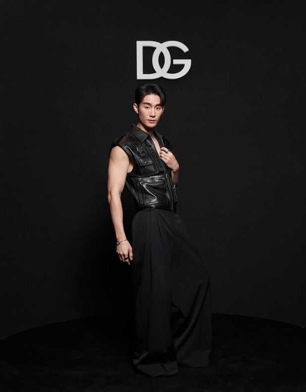 接下来是人见人爱、长相甜美帅气的Book,他穿着D&G与Force携手而来。