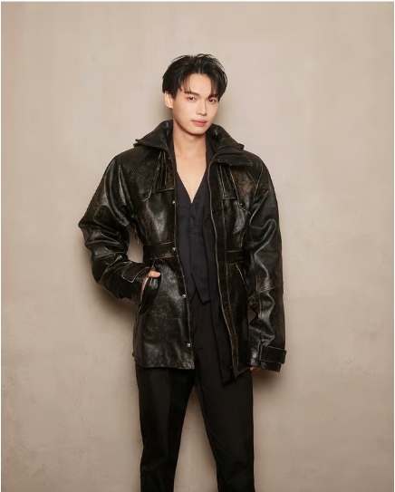 这次Win选的是酷酷的风格,独特的造型让任何人见了都会情不自禁爱上,他穿了黑色的衬衫,外搭厚款的皮外套,外套的亮点是领子厚,配上长裤,最后再搭配皮鞋,可以说Win无论穿什么都看起来很高贵。