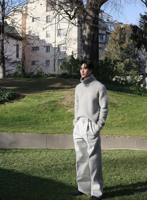 接下来就是帅气温柔的Gemini,这次他穿的是Zegna品牌的衣服。Zegna是一个古老的意大利品牌,风格看着高贵养眼,非常适合Gemini。他穿着酷酷的灰色高领毛衣,搭配了剪裁好看的酷酷的阔腿裤