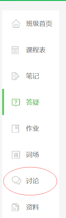 同学你好,讨论区在班级首页左侧哦,祝学习愉快!