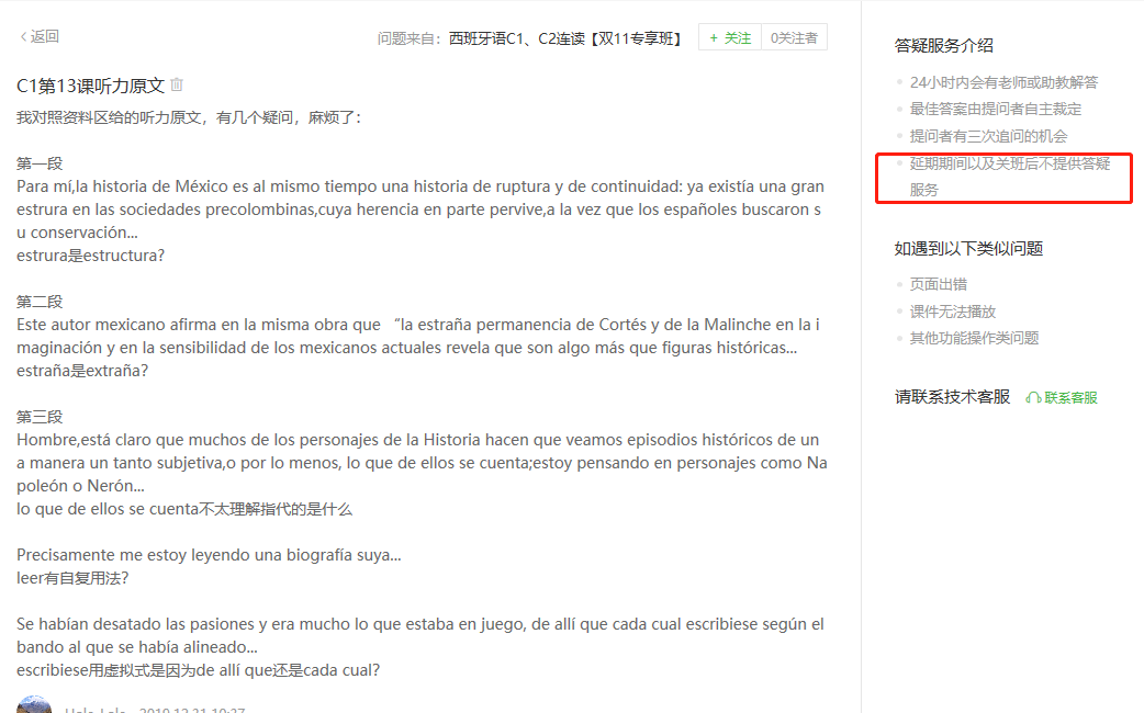 同学你好,同学的班级已经关班了,延期期间以及关班后是不提供答疑服务的哦,可以看下右边的介绍呢