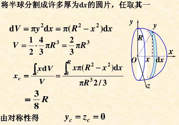 求半径为R的匀质半球(半球的底面在xoy平面上)的质心