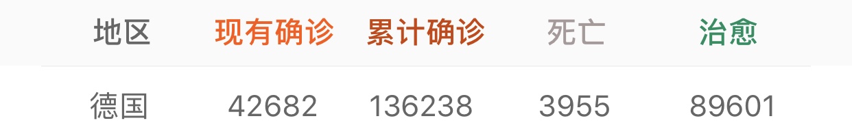 德国和泰国新冠病毒感染人数对比(截止日期:4月16日)