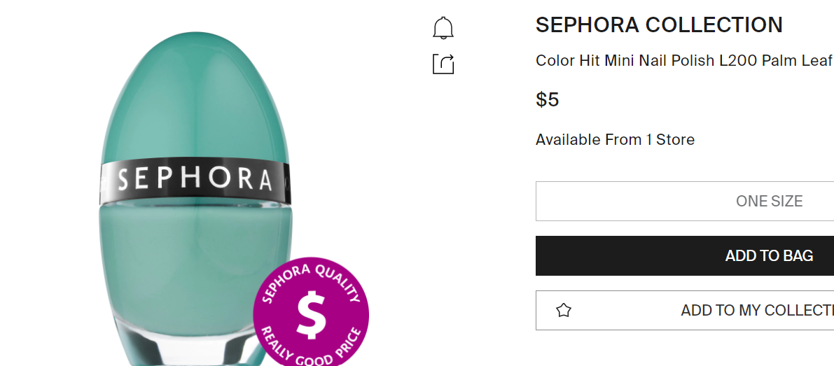丝芙兰的 Collection Color Hit 指甲油,售价5美元