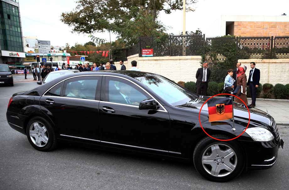 既然是代表国家形象的国车,那么“国家符号”肯定要在车上亮相——Fahrzeugstander,即放置在公务车右侧挡泥板的特殊旗帜