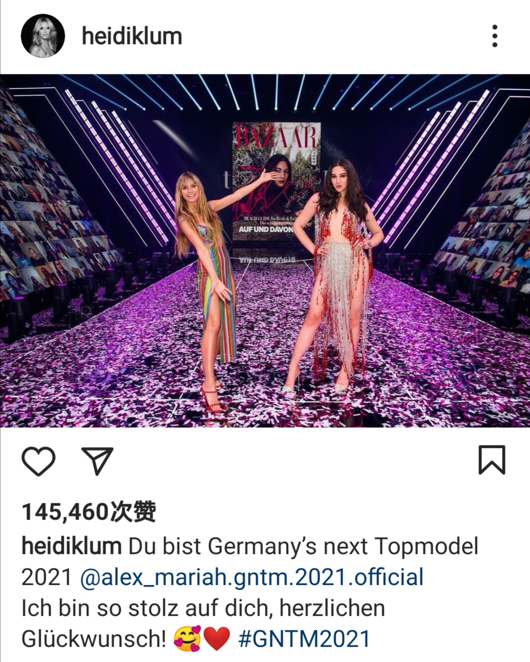 (Heidi祝福Alex夺冠,图源Ins)
