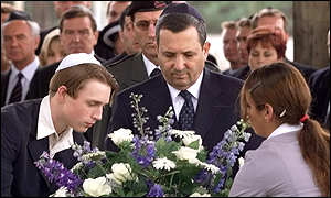 以色列总理巴瑞克和德国总理施罗德携手参观萨克豪森集中营