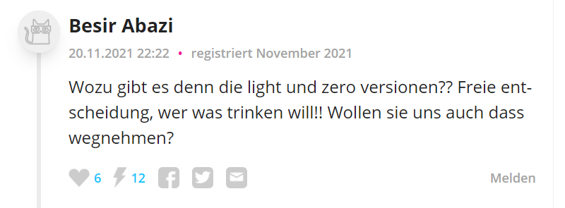 瑞维拉集团对会谈持开放态度,并很想知道与联邦食品安全与兽医局的进一步对话会带来什么。发言人莫妮卡-克里斯特纳强调,最新的创新都是在清淡、自然甜味的饮料领域。减糖一直是瑞维拉生产饮料时的一个重头任务。早在1959年,无糖的蓝标瑞维拉饮料就在瑞士推出。