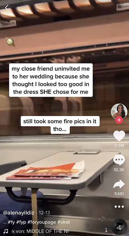 So postete sie mit den Worten "Als es eskaliert ist und sie mich ausgeladen hat" eine anscheinende Textnachricht ihrer heiratenden Freundin.
