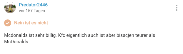 "Wenn man das Angebot wahrnimmt, unterstützt man doch auch nur die Massentierhaltung der Zulieferbetriebe von KFC."