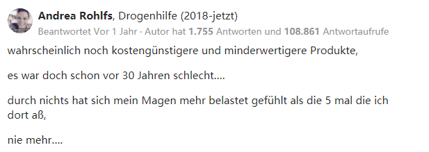 字里行间,都透露出了对肯德基的不满和怀疑。事实上,不仅是素食主义者,在一项德国人对快餐连锁店的信任度调查中,肯德基垫底。