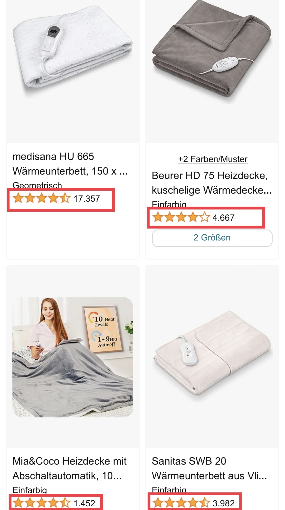 小编点开了德国亚马逊,搜索后发现电热毯的销量着实很高