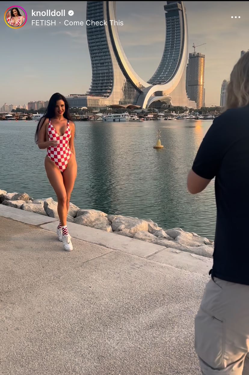 Ivana还谈到自己在卡塔尔这段时间的经历:“没有人叫我遮盖住我的身体,每个人都想和我拍照,甚至是当地人。”她原本打算等她支持的克罗地亚队被淘汰后就回家,但是她爱上了卡塔尔的沙漠,因此无论克罗地亚队最终走多远,她都会等到比赛结束再离开。