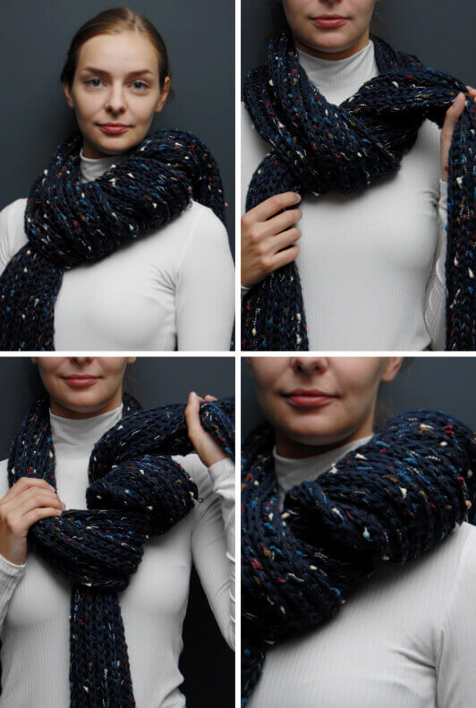 4. Den Knoten drehst du so ein, dass er im Schal verschwindet.