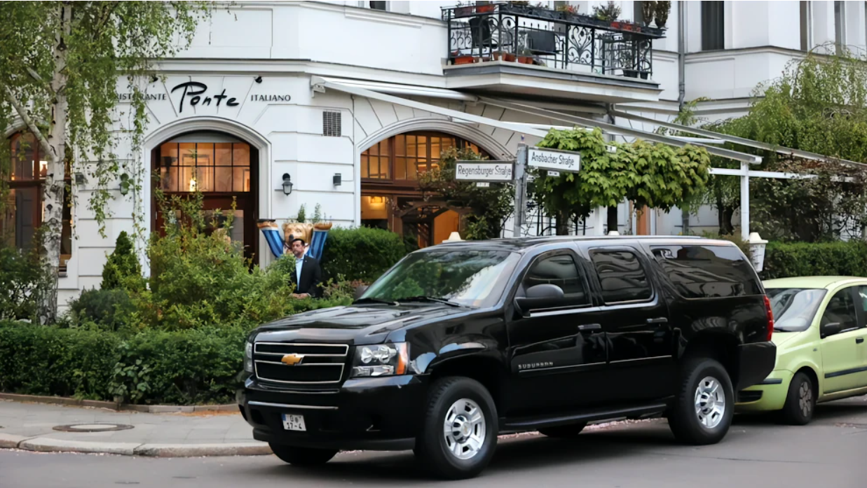 Schöneberg的高档意大利餐馆,门口处站着安保人员