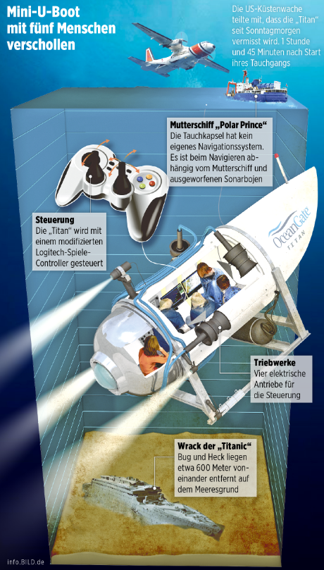 顺便一提,这位60岁的男士之前已经预定了他的下一次冒险: 他想花25万美元与“维珍银河”公司一起飞向太空。现在他在思考:“在失踪潜艇这一悲剧事件之后,我现在对自己对极限的所有追求感到了怀疑......”