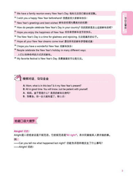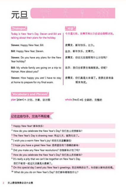 达5000多的经典句型,每段对话的结尾都会给出一些生词和短语,这种“会话+句型+词汇”的形式能帮助大家在练习口语的同时积累一定的词汇,达到有效学习。