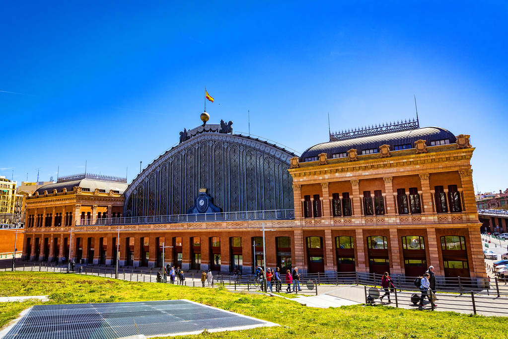 位于西班牙首都马德里的阿托查火车站,是一件融合了砖(ladrillo)、铁(hierro)、玻璃(cristal)和热带花园(un jardín tropical)的艺术品,令人惊叹。目前的外观是1992年在建筑师Rafael Moneo指导下进行大规模改造的结果,以适应高铁的通车。这个如今的大型交通枢纽曾出现在许多艺术作品中,例如西班牙浪漫主义画派画家戈雅的作品——《1808年5月3日夜枪杀起义者》(Los fusilamientos del tres de mayo)的背景里就有Atocha。
