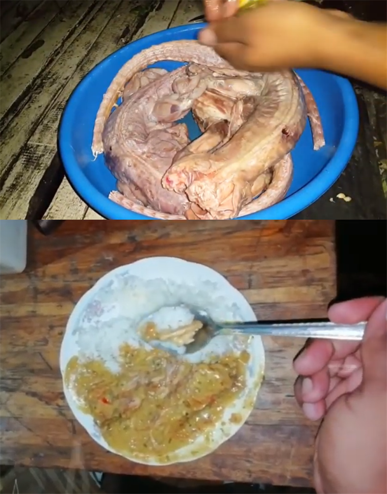 要烹饪这道菜,需要将此爬行动物的皮完全去除并在盐水中炖煮。在肉备好之后,配上洋葱,红辣椒和大蒜,在椰奶中继续炖煮。这道菜可以配上米饭或煮过的木薯食用。