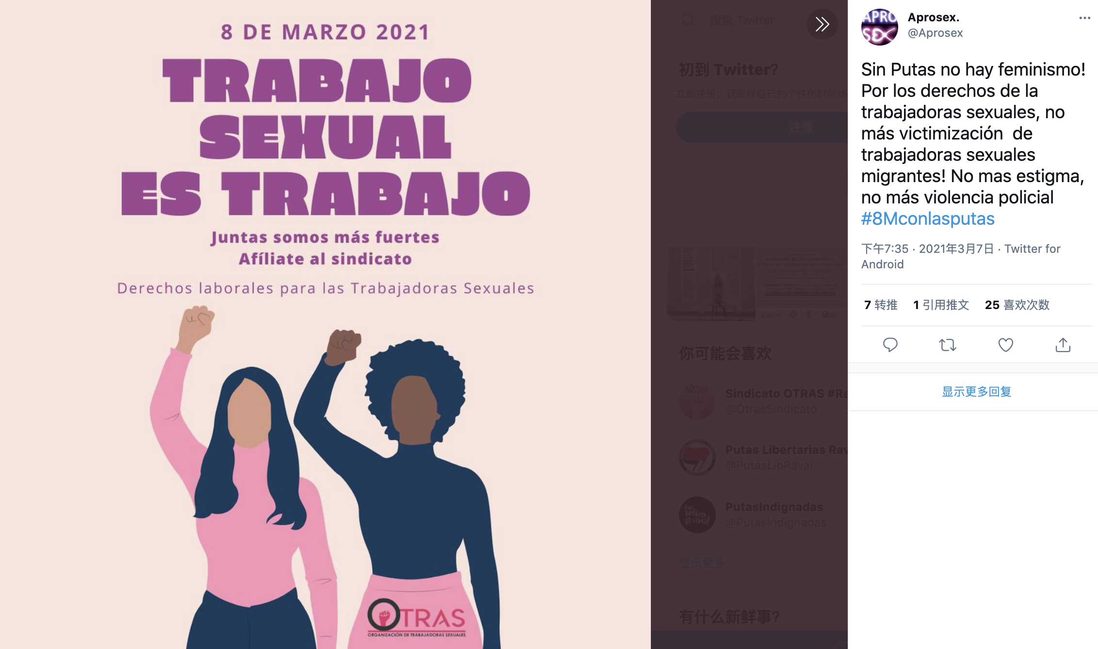 针对这一问题,两方至今争执不休。然而,去年突如其来的新冠病毒又将这一问题推向了风口浪尖:由于性服务与防疫措施“天然的”对立,很多从业者已经失去经济来源很长一段时间了。如果现在去征求一个性工作者的意见,回答很可能只是“我们不能不工作啊(no podemos dejar de trabajar)”。由于不在社保系统之中,失业救济金也无处可领。哪怕好不容易有了一单生意,居然还会有客户因为服务者在疫情期间多做了些防护措施而讨价还价。这无疑使她们本就不明朗的处境雪上加霜。