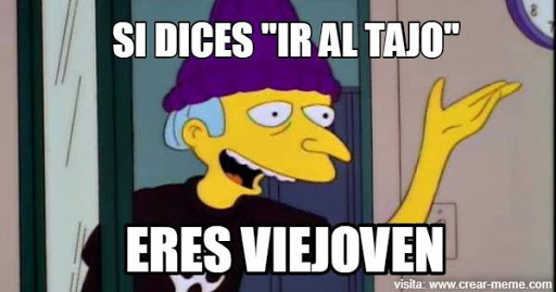 “ir al tajo”的意思是指上班工作,因为tajo一词是工作(trabajo)的众多同义词之一(当然,在这个短语里面tajo与西班牙塔霍河没有任何关联)。这并不是一个新词,因为我们发现几个世纪以前的写作样本里面就有用到这个词汇。这个词来源于动词tajar(用一个切割工具将一样东西分成两个或多个部分),从拉丁词汇taleare演变而来,它的意思是“切,切割”。过去有很多工作人员并不按照固定时间进行工作,而是按照工作量为标准进行工作(例如现在的收割、除草、播种、涂漆、砍伐、挖矿的工作等),这种工作量往往是根据你在地面留下的痕迹来计算的。