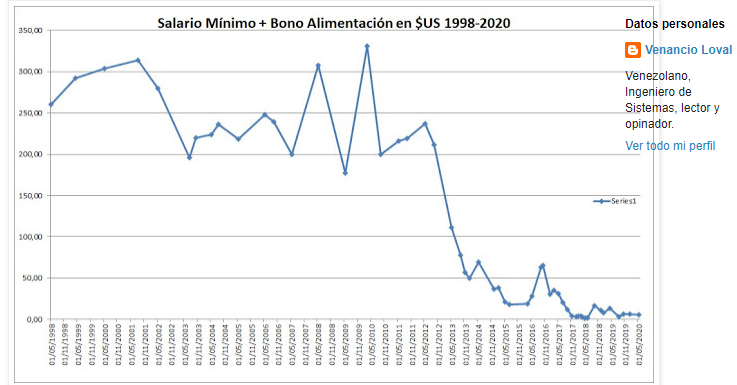 Hace solo nueve años, en abril del 2012, el presidente Chávez anunciaba un aumento de salario mínimo a 476 dólares (a cambio oficial), según sus palabras el más alto de Latinoamérica. Pero a partir del 2014, su valor comenzó a reducirse aceleradamente a medida que la crisis económica, las sanciones y la hiperinflación colapsaban el país. De acuerdo a las cifras oficiales el salario mínimo ha perdido el 99% de su valor en los últimos diez años y el 87% en los últimos tres años