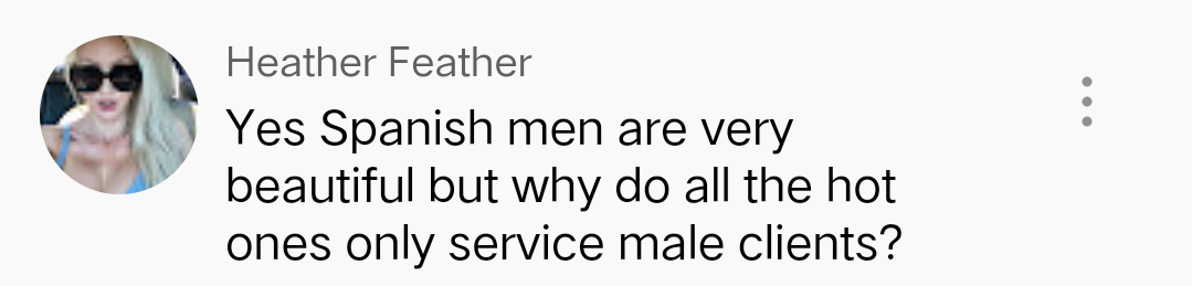 有网友表示顾客性别卡得太死:“西班牙男人真的很帅,但是为什么帅哥只为男性顾客提供服务?”