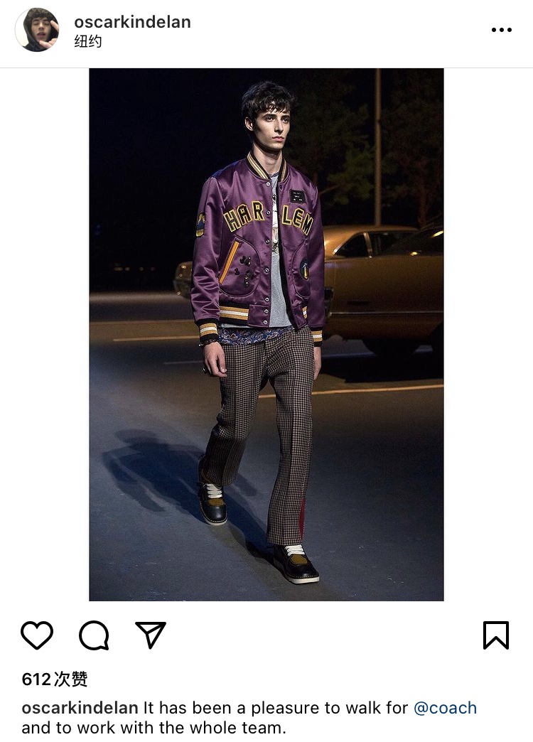先天条件超群,工作又认真的孩子自然能够得到更多的青睐。不久后的2016年冬天,各个奢侈品牌逐渐找上门来求合作。包括Coach: