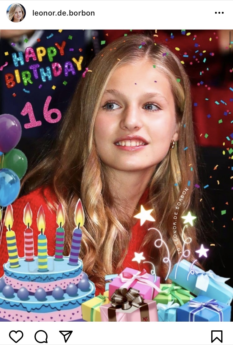 10月的最后一天对于一些人来说是欢庆万圣节的夜晚,对于另一些人来说可能是付尾款的日子,而对于西班牙未来女王——我们的莱昂诺尔公主(Leonor)来说,10月31日正好是她16岁的生日。