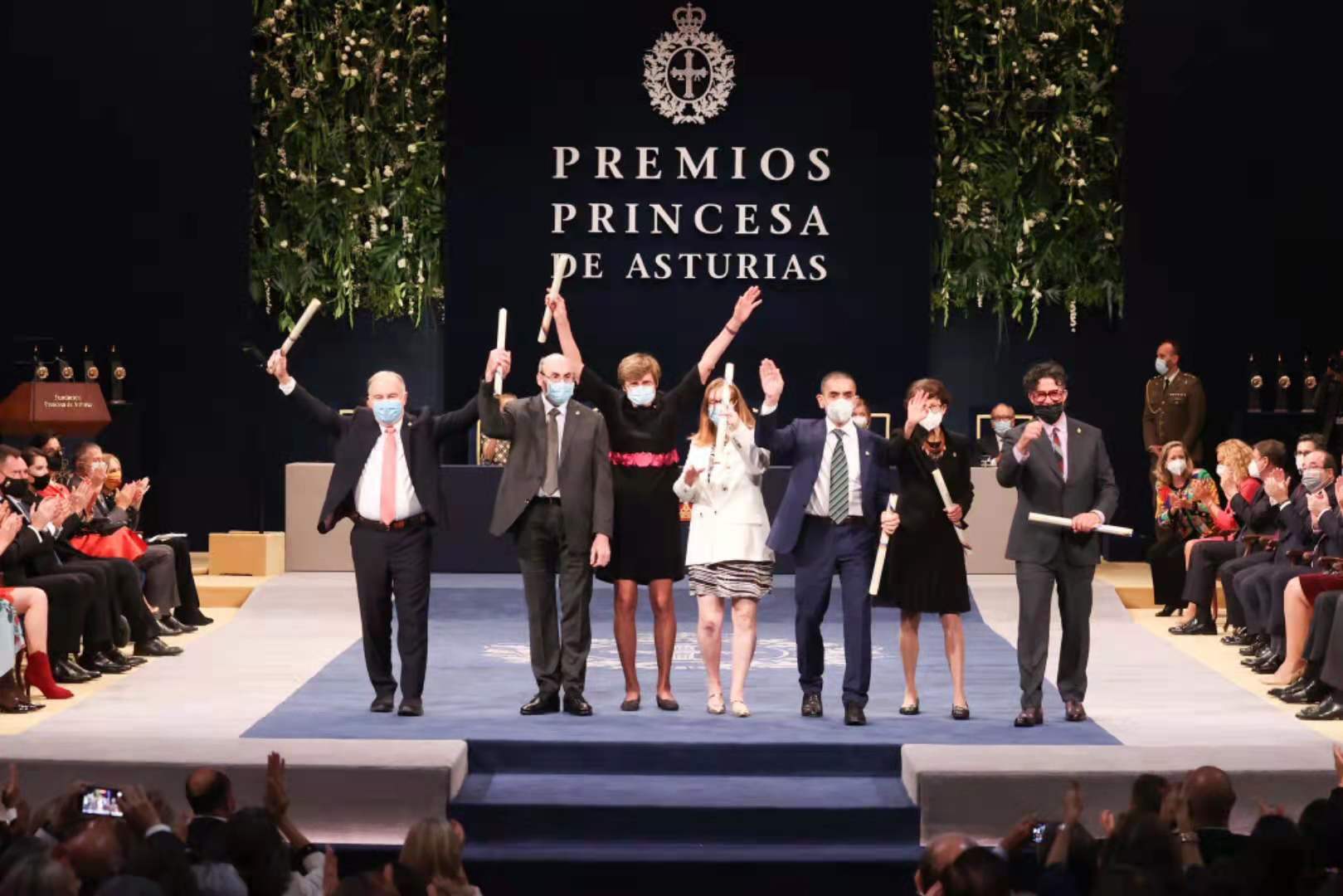 虽然没能赶回来参加西班牙国庆仪式,但有一项活动她是必须在场的——当地时间10月21日傍晚,王室一家共同出席了2021年阿斯图里亚斯公主奖(Premios Princesa de Asturias)颁奖典礼。