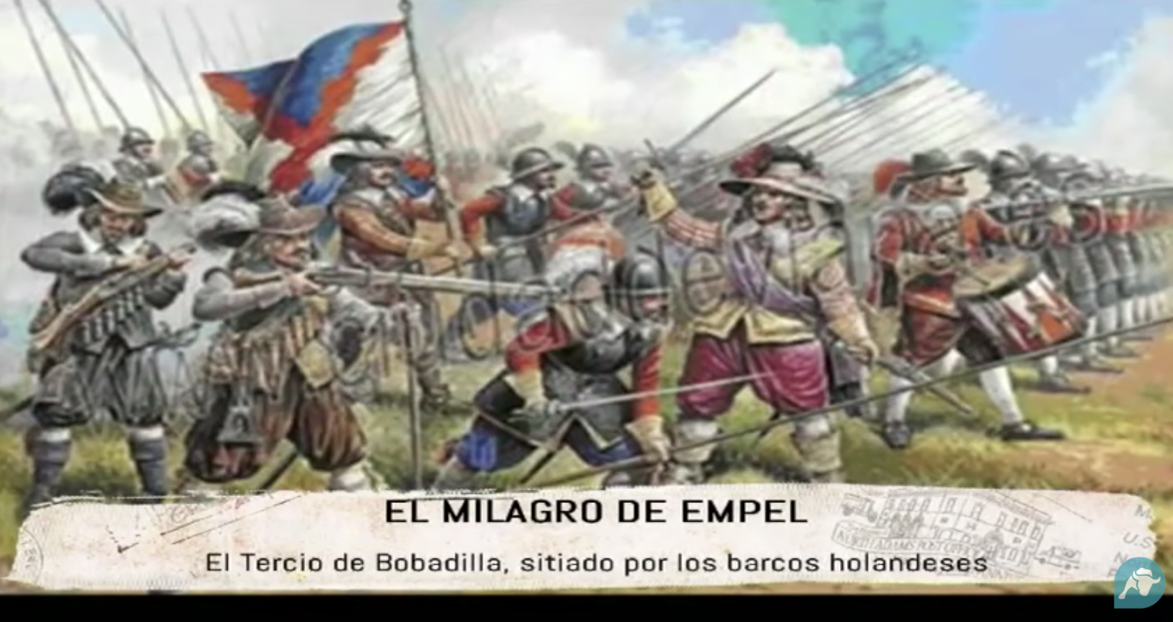 根据传说,1585年12月7日,弗朗西斯科·阿里亚斯·德·博巴迪拉(Francisco Arias de Bobadilla)领导的第三军团(约5000人)在80年战争期间(Guerra de los Ochenta Años又称荷兰独立战争,西班牙帝国称之为低地国叛乱)在博梅尔岛(isla de Bommel)作战。该岛屿位于摩萨河和瓦尔河(los ríos Mosa y Waal)之间,被霍拉克上将(Holak)的中队完全封锁。对西班牙第三军团来说,这种情况是非常绝望的,因为不仅包围圈在收紧,生活物资和干衣服的短缺也在加剧。