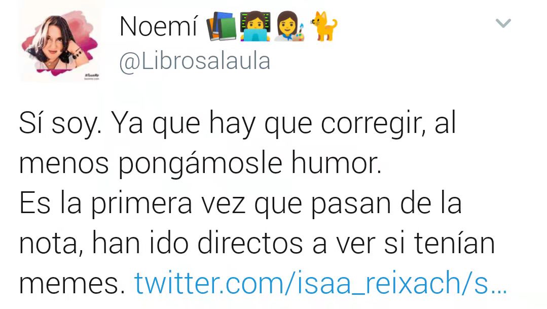 "Sí soy. Ya que hay que corregir, al menos pongámosle humor. Es la primera vez que pasan de la nota, han ido directos a ver si tenían memes", comentaba la profe.