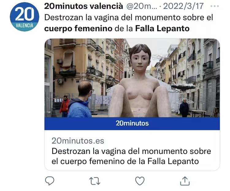 位于瓦伦西亚Lepanto Guillén de Castro的一座以裸体女性为主体的纪念碑,在清晨遭到了袭击。委员会发表声明谴责这一行为,认为它“违背了法雅节精神并且是对女性的不尊重”,因为损害集中在“法雅人偶”的私密部位,这也表明了“裸体女性的身体仍然是一种禁忌的形象”。