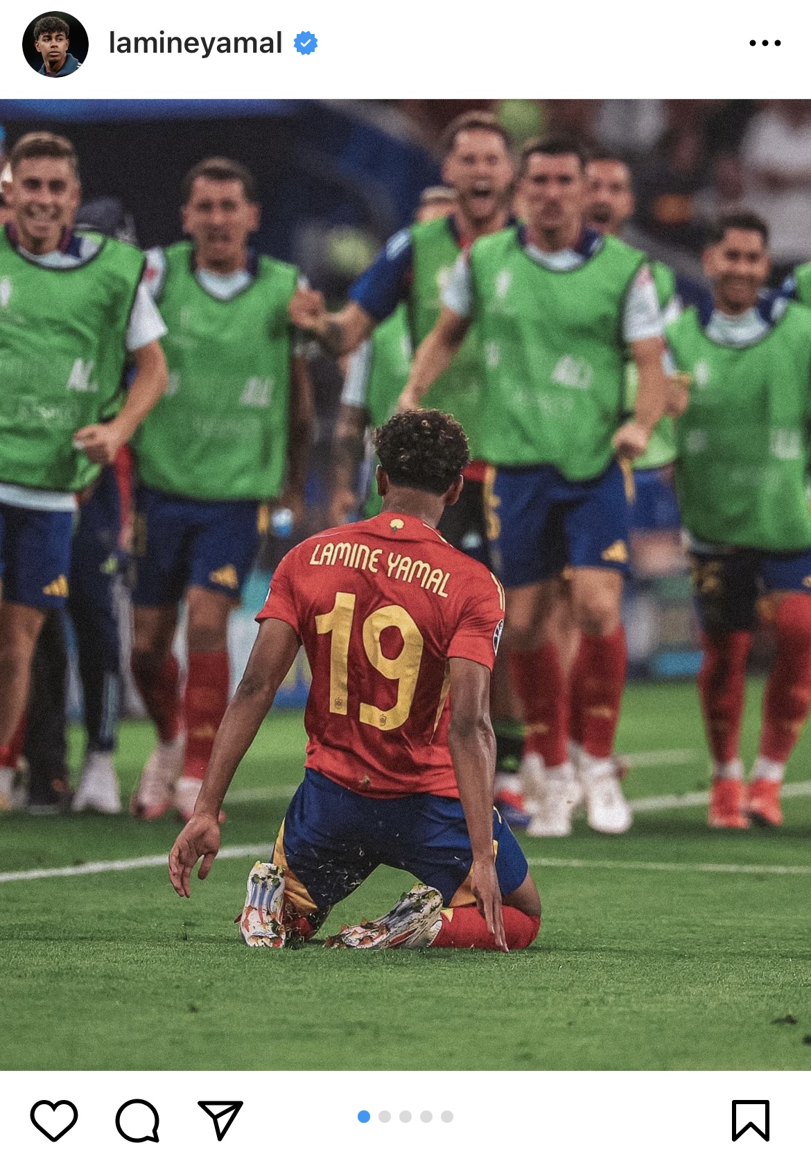 Tras ganar la EuroCopa, en redes sociales se viralizó una foto de ellos juntos. Yamal se mostró sumamente feliz y se puede observar que la muchacha le está acariciando el rostro. Además, en su mano lleva el trofeo que ganó el futbolista.