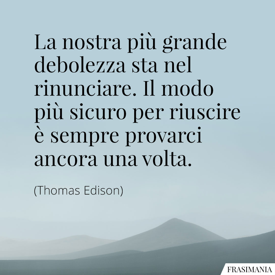 La nostra più grande debolezza sta nel rinunciare. Il modo più sicuro per riuscire è sempre provarci ancora una volta.
