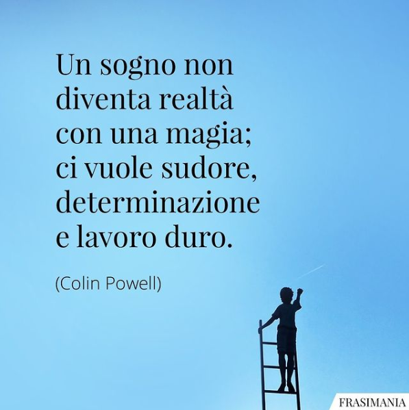 Un sogno non diventa realtà con una magia: ci vuole sudore,determinazione e lavoro duro.