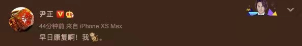 除了王一博以外,演员尹正也是他的车迷之一。2020年10月16日,罗西在社交平台上发文承认自己确诊新冠,尹正便一早在微博发文为自己的偶像祈福:“早日康复啊!我‘猴’”