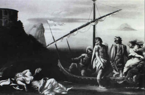 忒修斯击败了弥诺陶洛斯,并和阿里安娜一起重返雅典娜,但是在途中,年轻的男孩将他的爱人抛弃在荒芜的纳克索斯岛。阿里安娜独自一人哭泣,直到狄俄倪索斯(古希腊神话酒神)前来安慰并将其带走。波塞冬因忒修斯抛弃了女孩而愤怒,施法下了一场暴风雨撕破了忒修斯船上的白帆,迫使男孩升起黑帆。