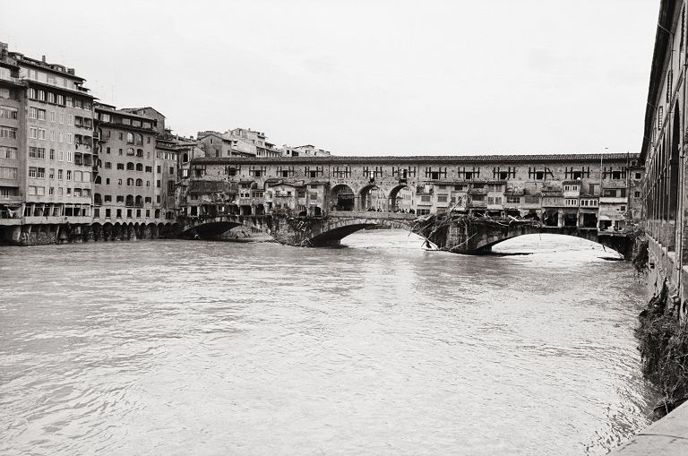 二战期间,德军撤退时炸毁了佛罗伦萨的所有桥梁,却唯独留下了老桥;之后老桥又在1966年挺过了阿诺河洪水的冲击。
