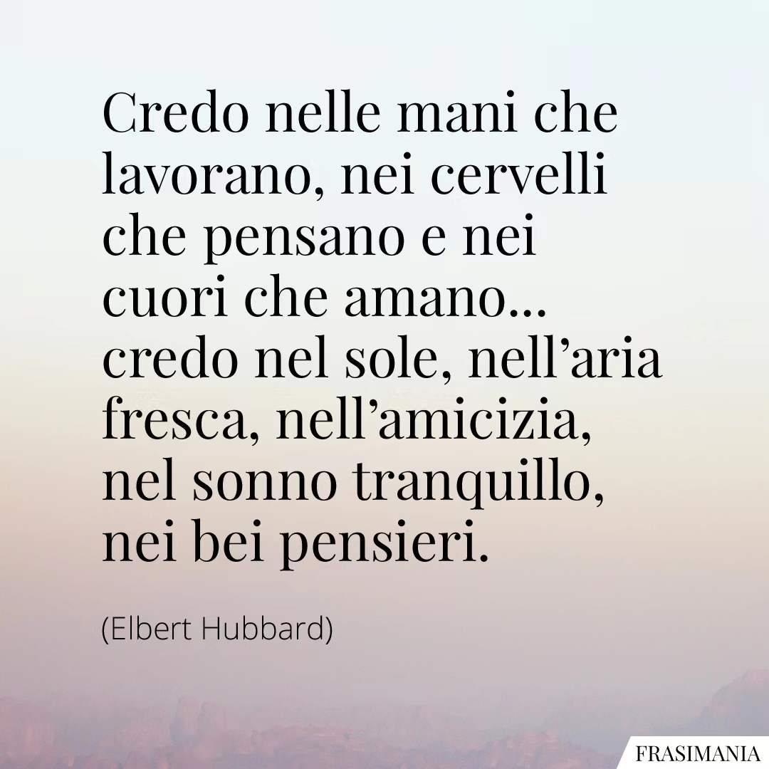 Credo nelle mani che lavorano, nei cervelli che pensano e nei cuori che amano… credo nel sole, nell'aria fresca, nell'amicizia, nel sonno tranquillo, nei bei pensieri.